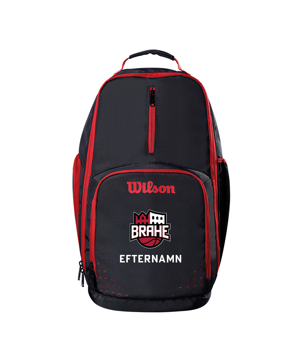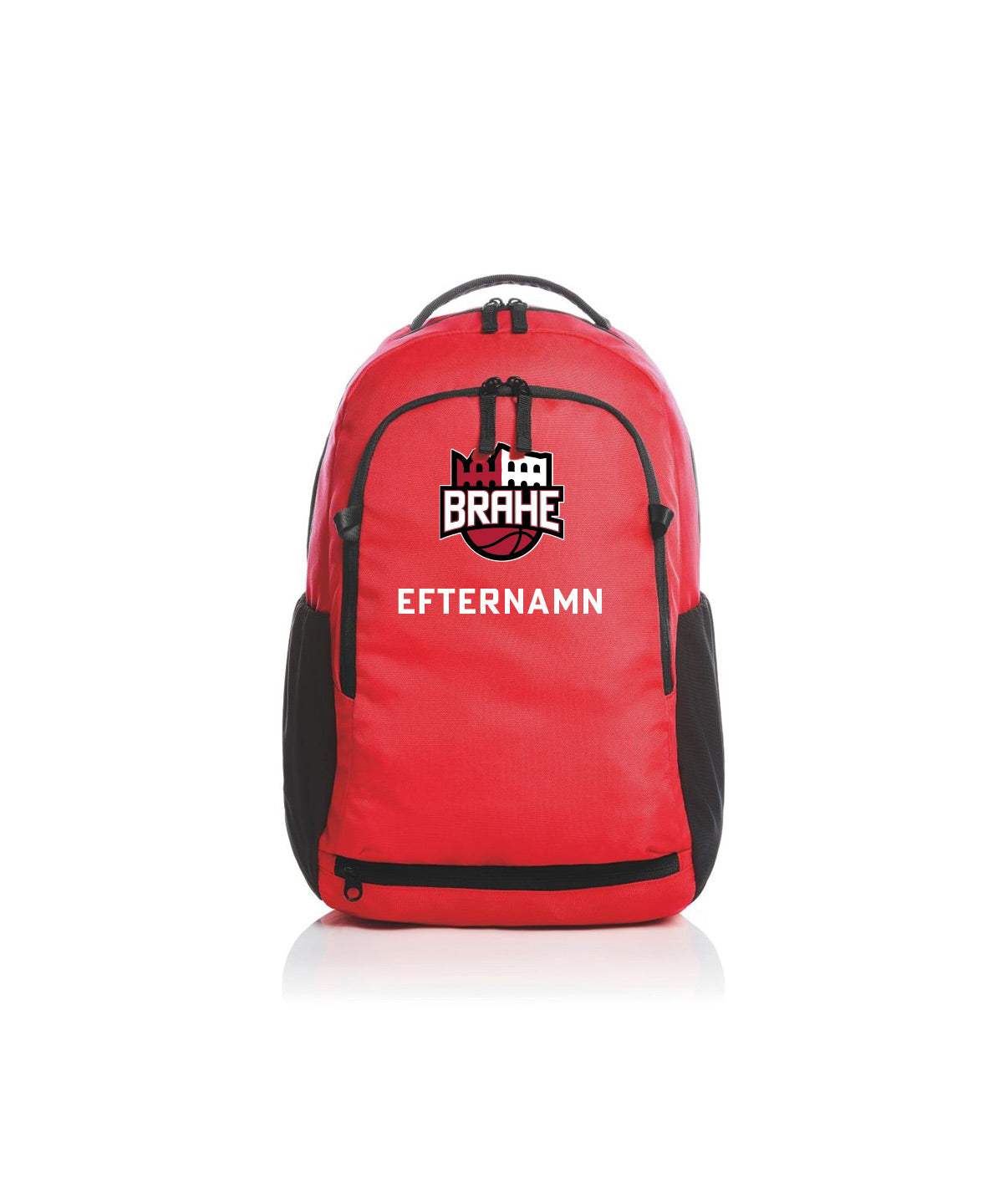 På ryggsäckar trycker vi namnet mitt på framfacket.