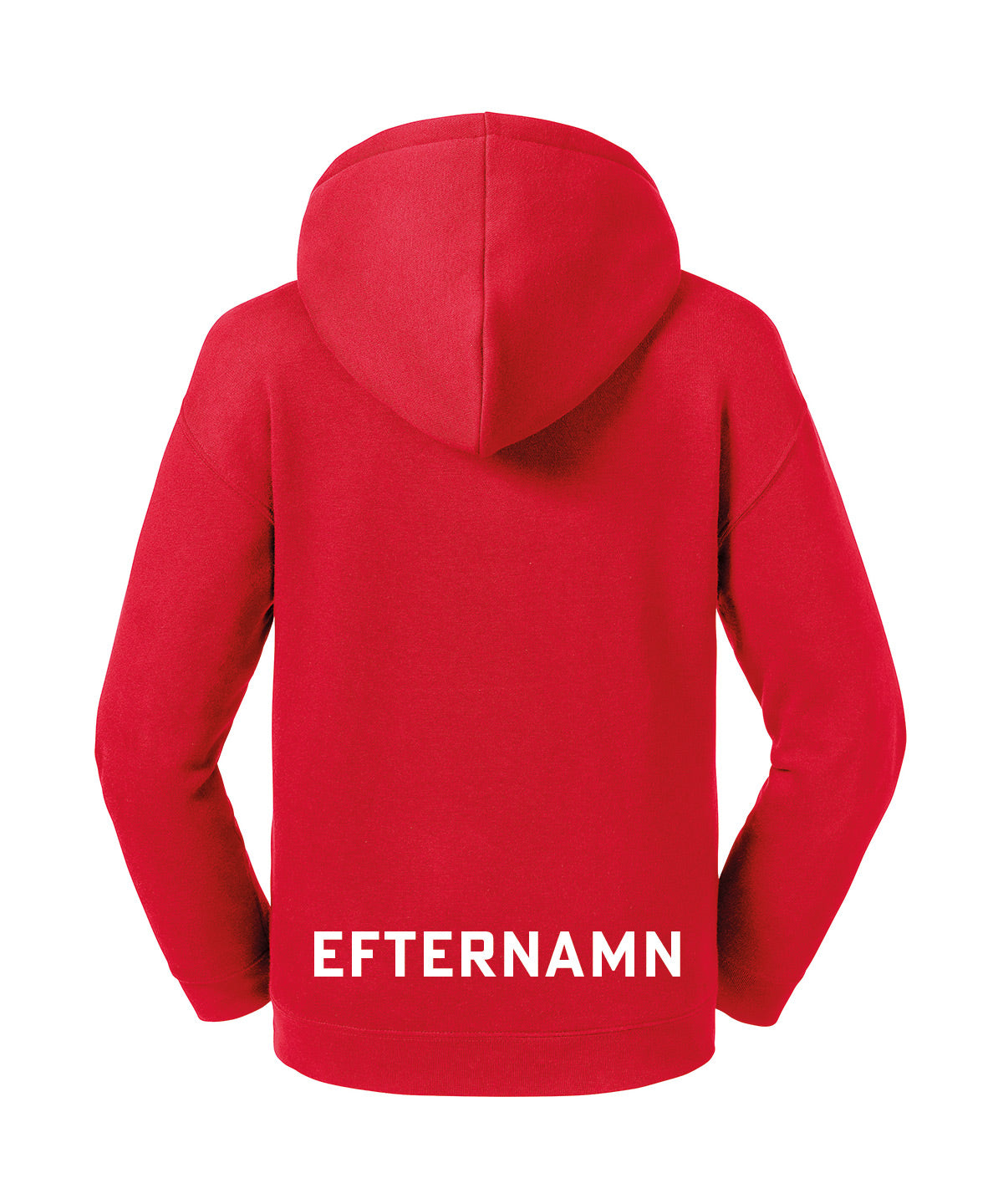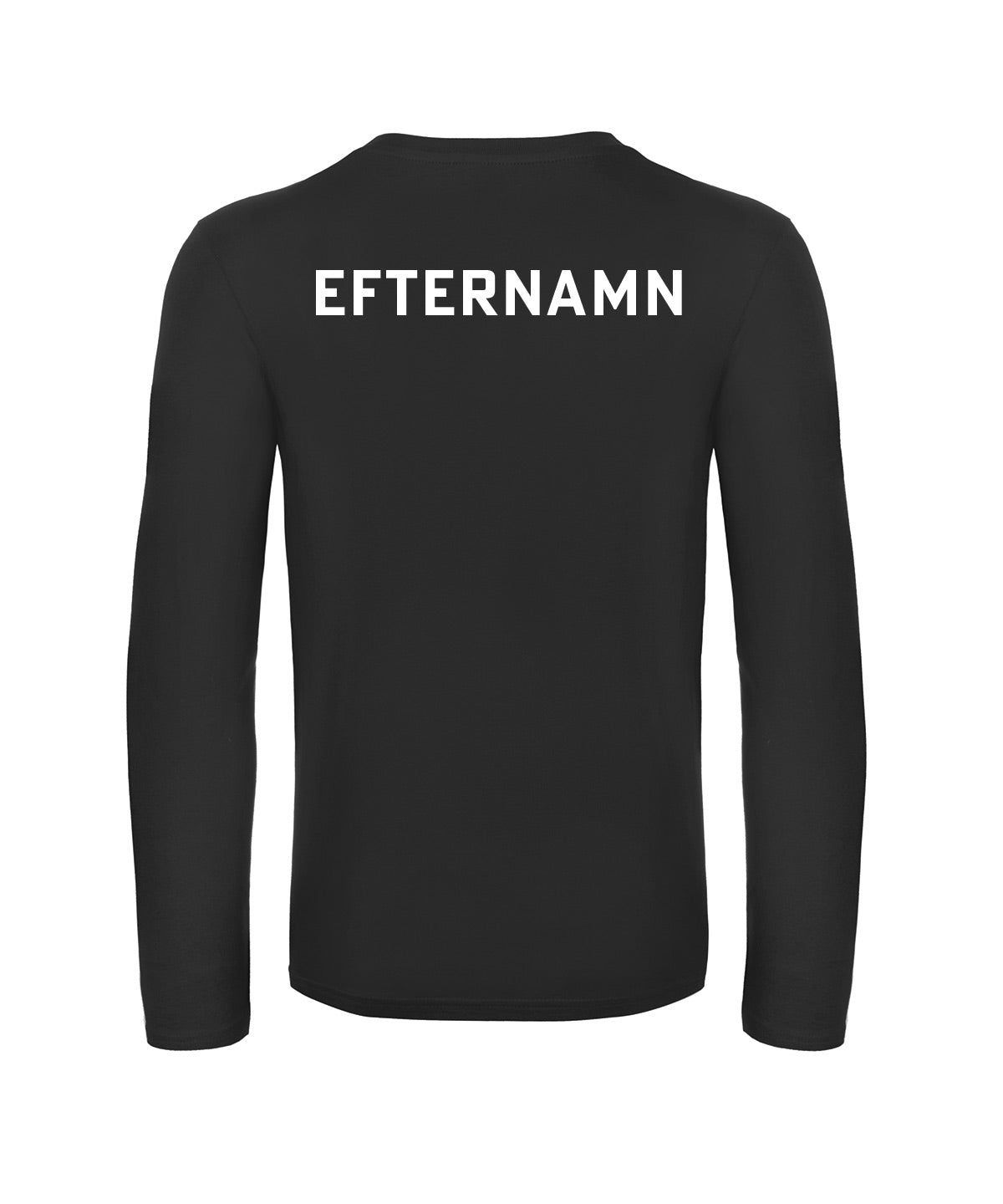 På tröjor utan luva, trycker vi namnet högt på ryggen.